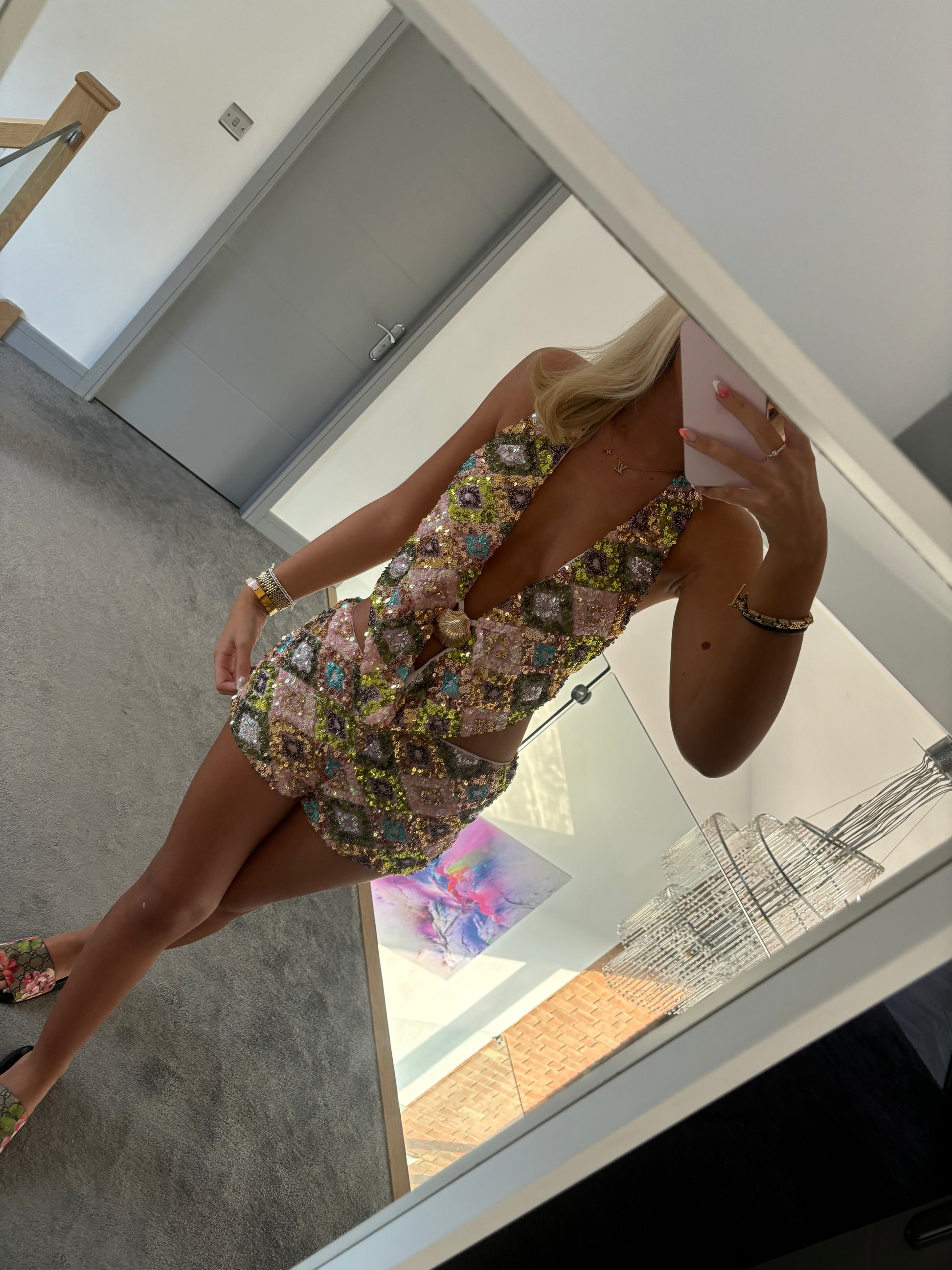 SEQUINED V NECK SET